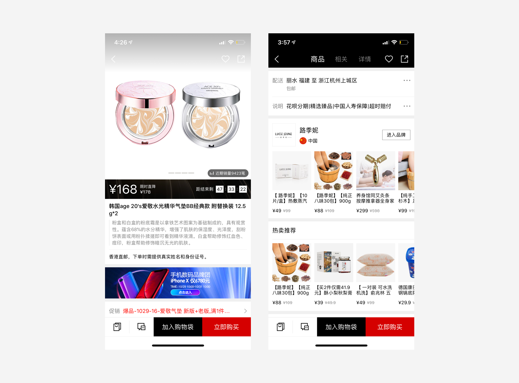 2.品牌授权,对拥有被授权资格的商品透出品牌授权背书入口,增加用户的品牌信任度。