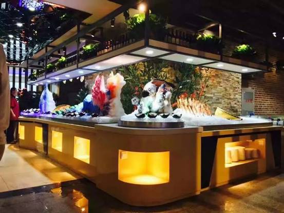 海鲜自助餐台是由我公司倾力打造的可以满足冷鲜、冰槽、水产、冷饮、酒水以及热菜等多种功能于一体的石材自助餐台。餐台整体在满足以上功能的前提下,在功能使用上也带来了非常合理的餐台布局,能够使的操作人员在最合理的操作上高效的统筹安排,不仅如此,在整体美观方面也给食客带来不小的视觉冲击力。
