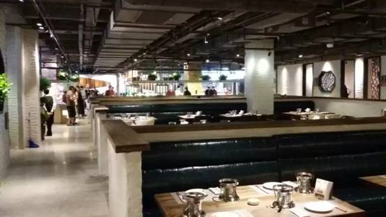 刚进入里边整体的现代工业风格结合中式元素所形成的风格碰撞,和外面繁华的商业区形成了鲜明的对比,让进来的每一位食客感觉到非常安逸和舒适。