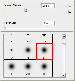 9、选择柔和的圆颗粒笔刷,不透明度设置为10%
