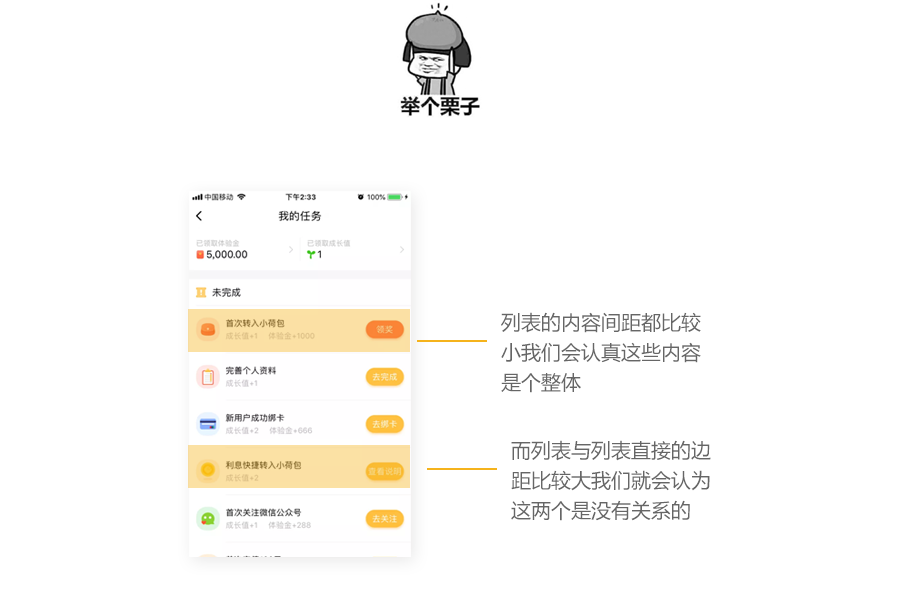 相似性原理在UI界设计中我们会经常用到,在设计前期都会定制设计规范:比如不同的图标但是图标的大小都是一样的都是48px这就是形状相似性,文字有第一层级32px第二层级28px等大小相似性区分层级完美的体现了大小相似性。可以利用相似原则组织好界面中的信息和层级关系