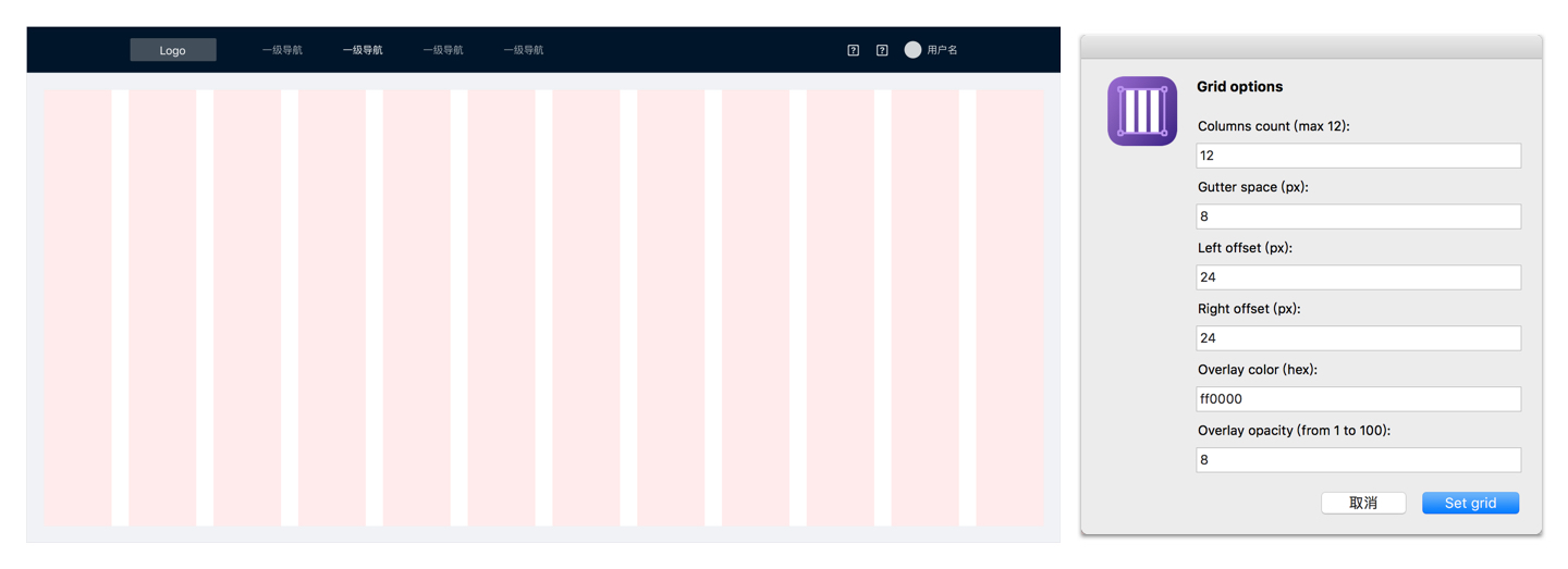 第1种,是采用sketch自带的工具,在显示-画布-布局设置,找到布局设置界面,可以根据自己的需要设置。但是有个缺点,就是这个布局是该页面全局的,不能针对某一块设定。如下图