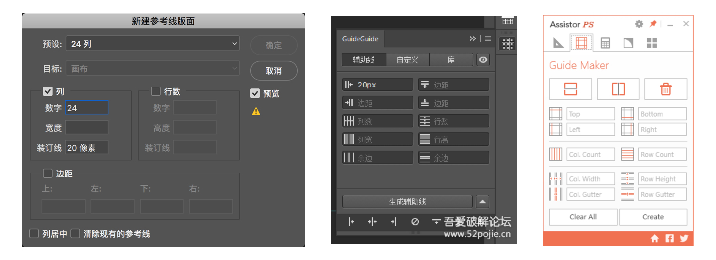 另外,PS插件Assistor Ps 的参考线功能也比较好用,推荐下,还有就是GuideGuide虽然插件多种多样,大家的使用的软件也各不相同,万变不离其宗,我们掌握好原理了,这些就能很好的被我们使用,提升我们的工作效率和设计质量了。