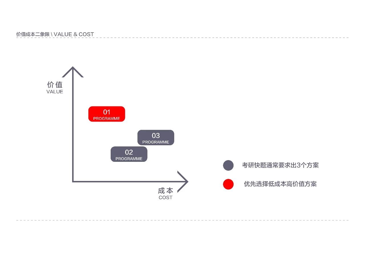 通过价值与成本的象限位置判断得出低成本高价值地最优方案。