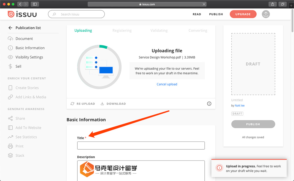 (本教程中,URL 链接:https://issuu.com/nattlee2/docs/service_design_workshop)