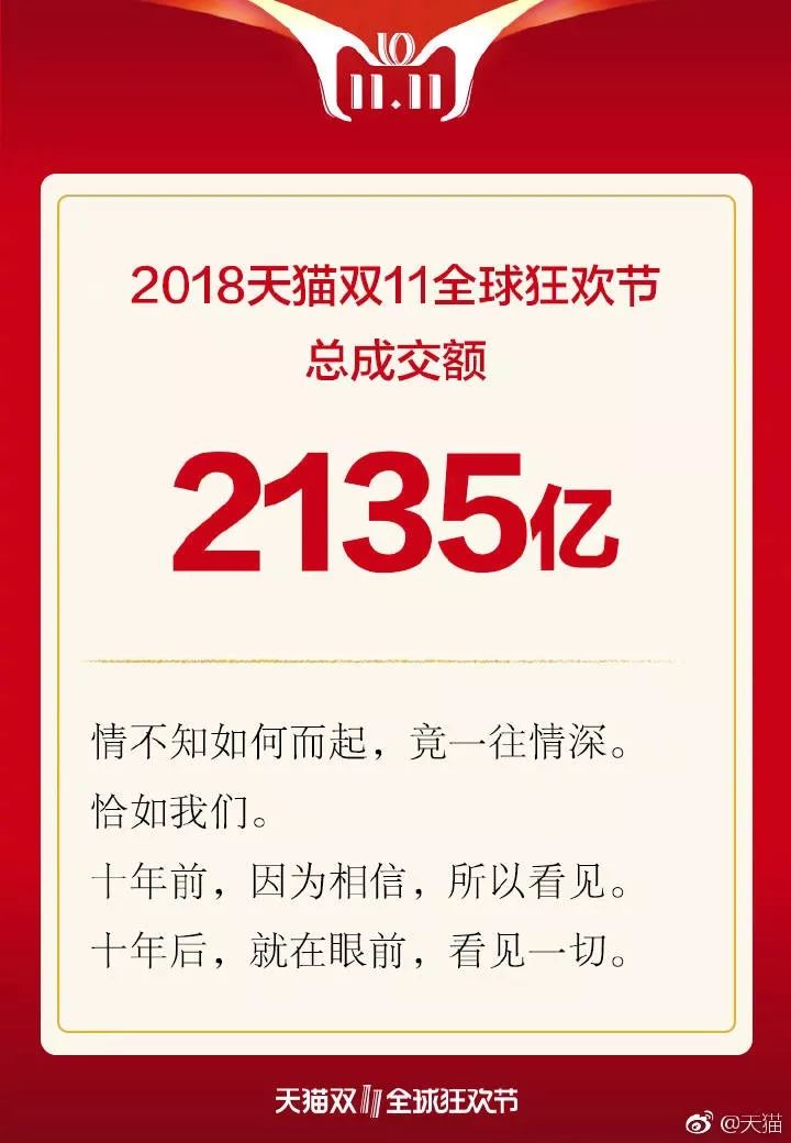 双十一已经过去,天猫官宣2018双十一销售额2135亿,从数据上来看,十年以来双十一的销售额一年比一年攀升,对面的你今年贡献了多少呢?