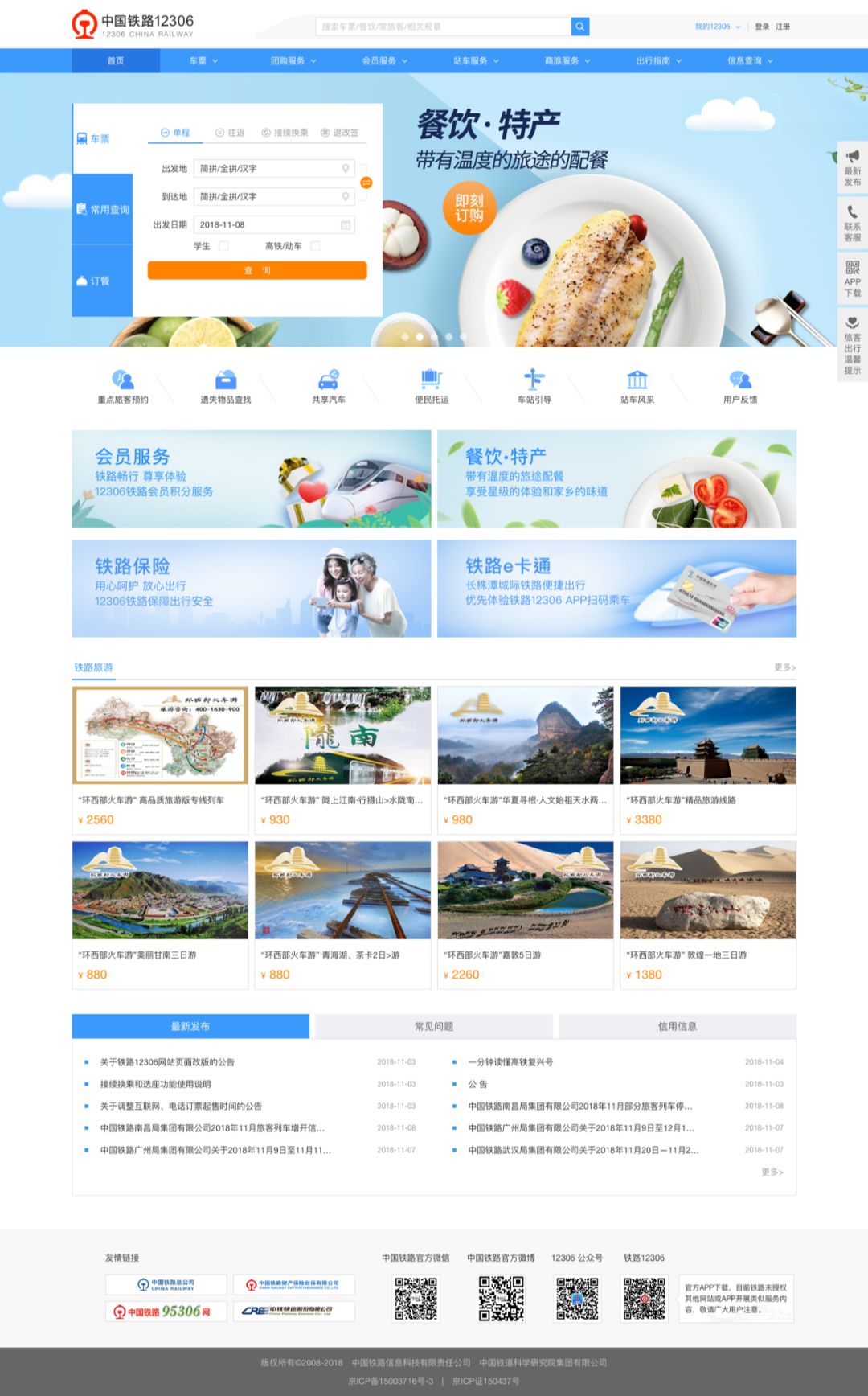 改版升级的中国铁路12306网站与11月3日正式上线运营,改版后的12306 网站采用扁平化设计,功能布局更加合理,界面更加友好清晰,购票流程更加便捷,还增加了用户扫码登录功能,减少了旅客无效点击,方便旅客快速购票。