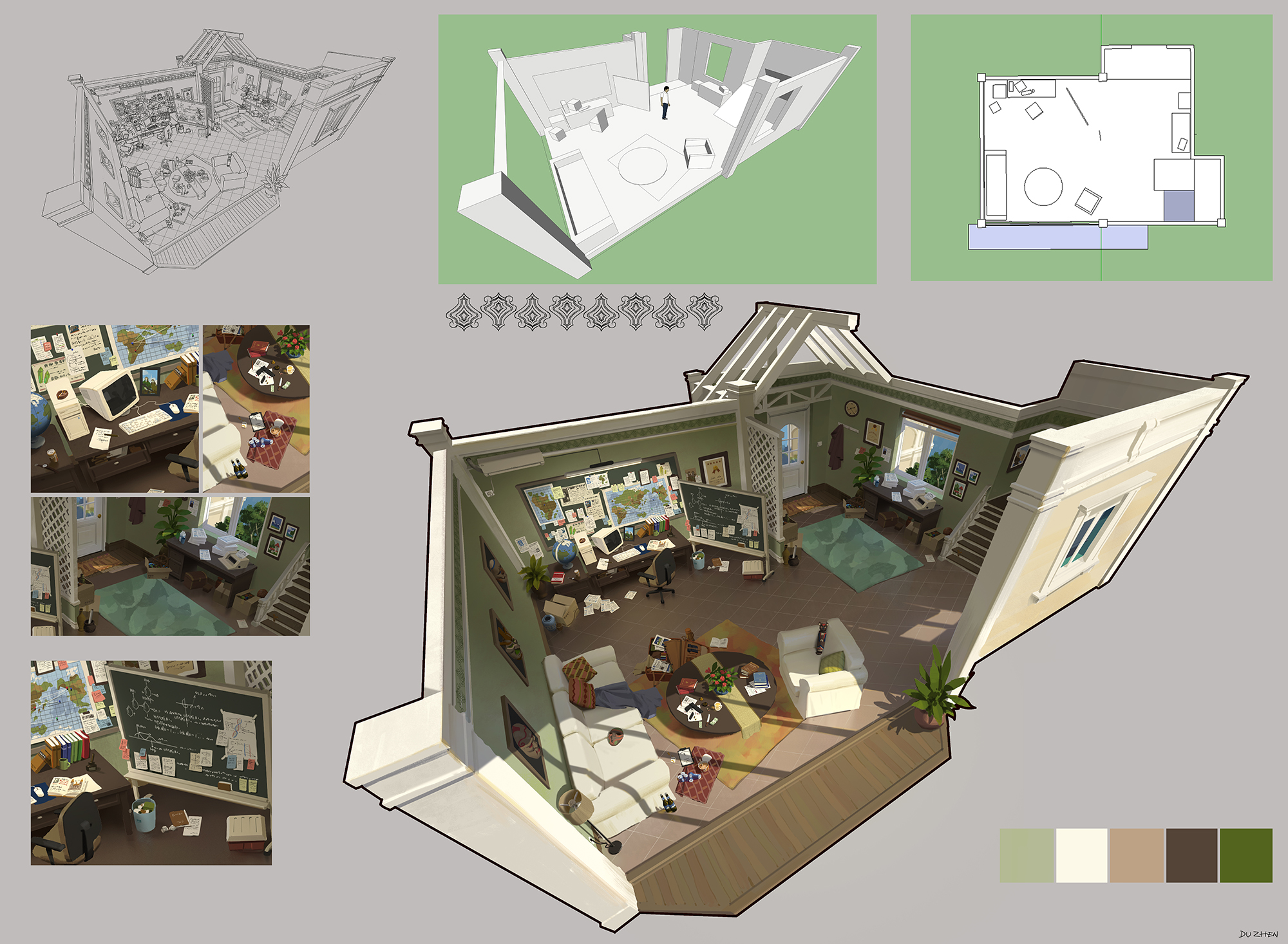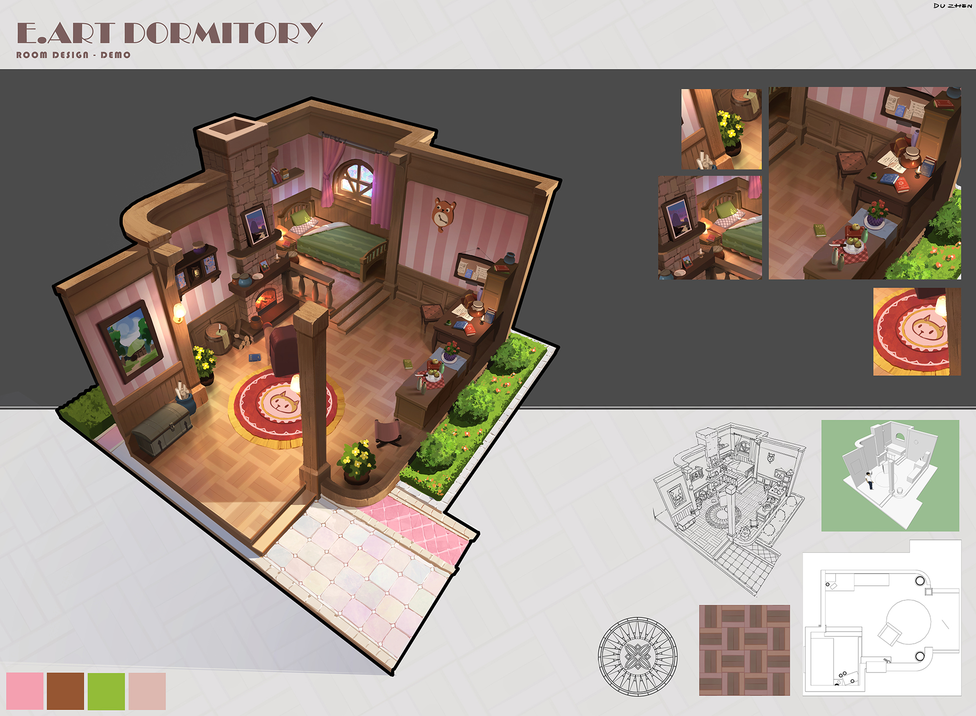 一个你设计的建筑,是干嘛用的,房间里外有什么,除了必备生活元素外,添置什么物件能让这个房子更有趣味性。增加一些小设计,而这些设计是符合你表达的主题的。