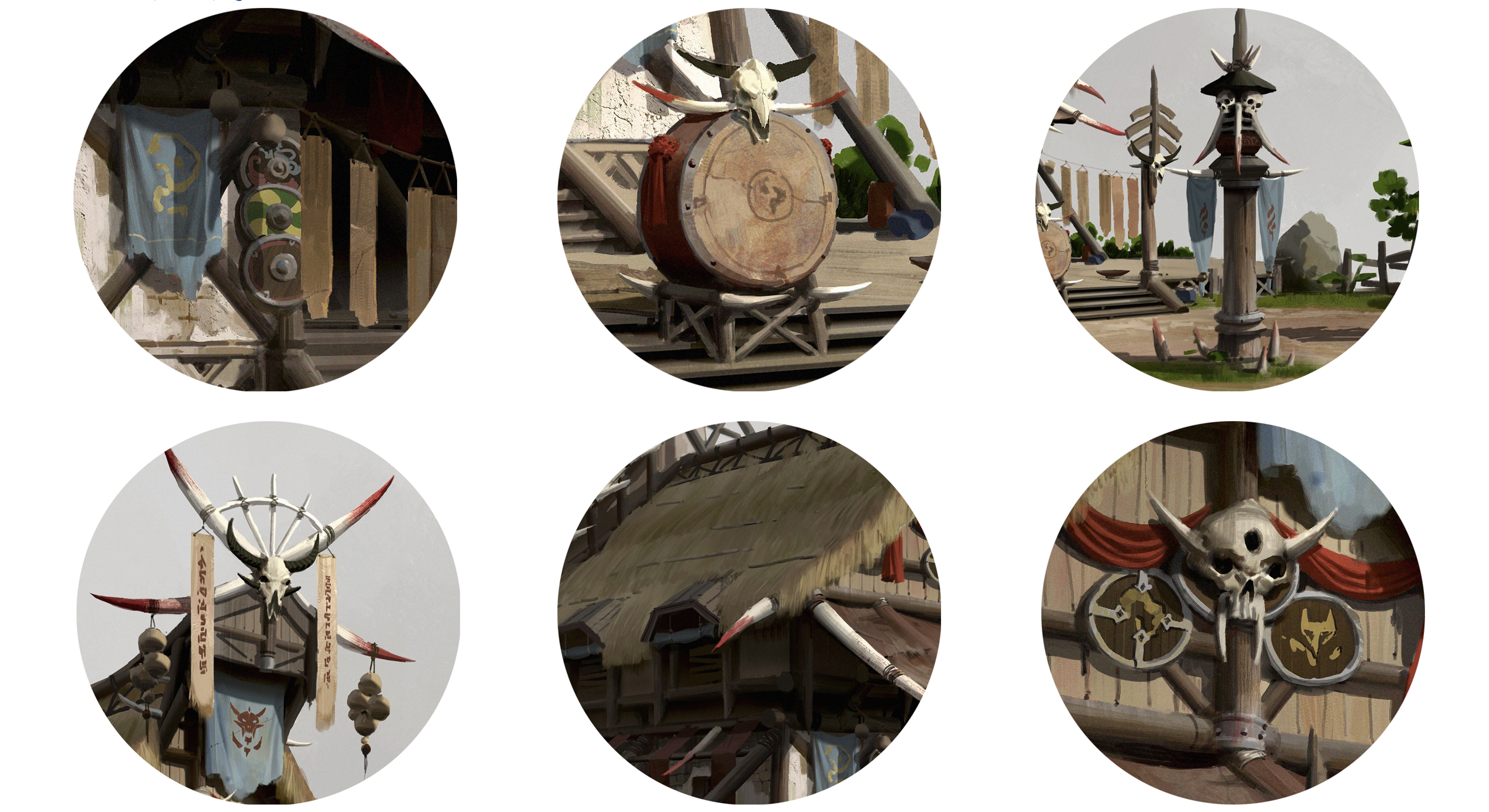 在设计一些具体细节要符合这个建筑的生活性,比如:族徽、徽旗、大鼓、头骨、象牙、部落符号象征等
