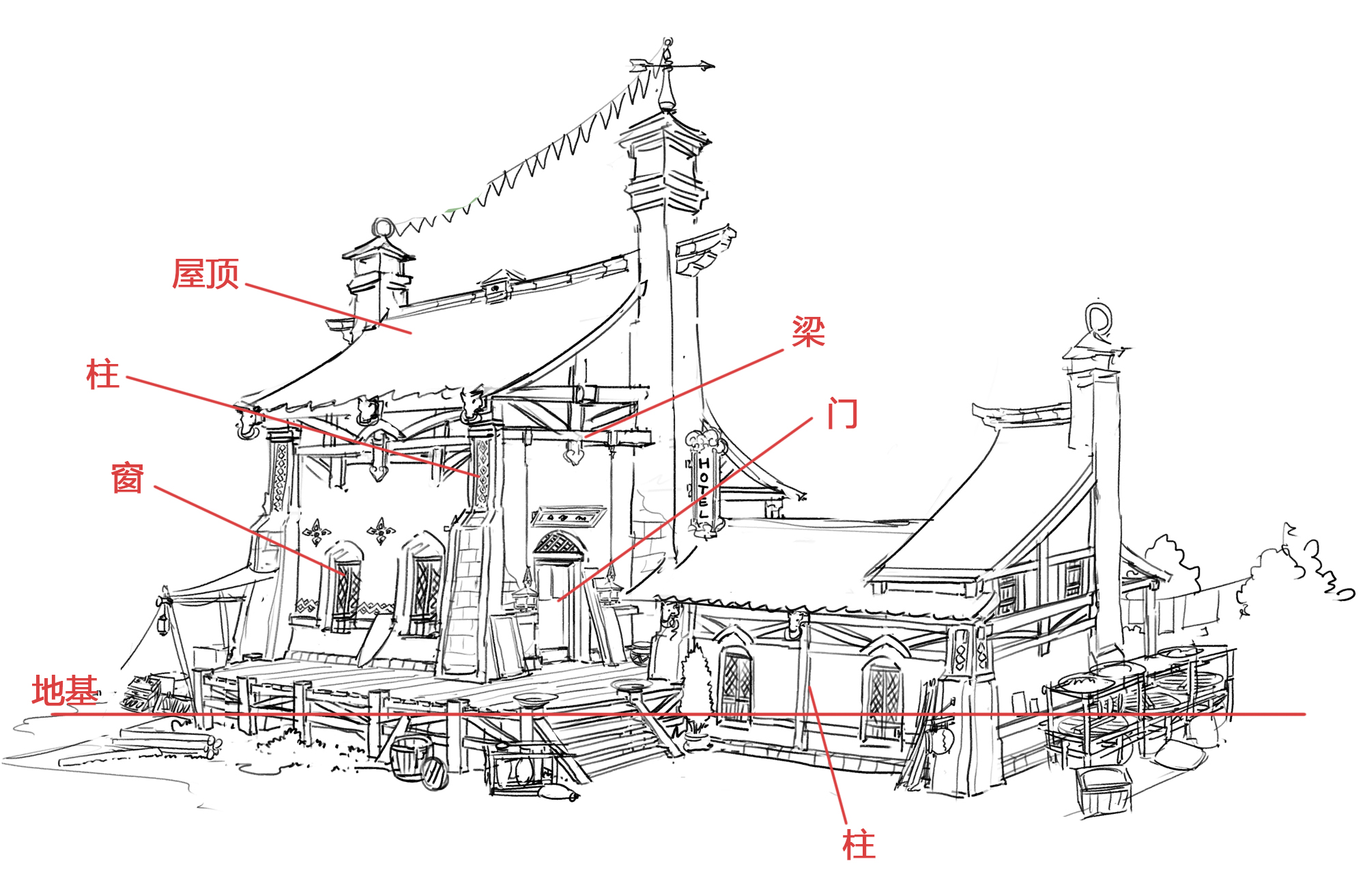 除了夸张的造型,屋顶,飞檐等大的元素外,想要你的作品更耐看,更有细节,必须要考虑生活性,你设计建造的背景时代,文化要有了解。