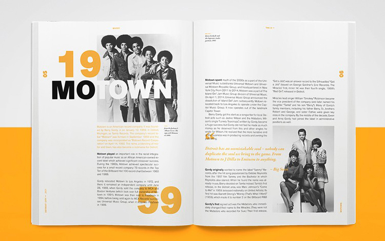 该技巧操作起来很简单,就是在标题或内文下面,增加相关的英文单词或阿拉伯数字就可以了。不过在处理下面的文字时要注意:1.颜色要比上面的文字淡,以免影响其识别性;2.字体要用粗体,且字号要比上面的文字大;3.要与上面的文字错位排版。之所以这么处理是为了增加版面的层次、对比、以及元素的丰富性。