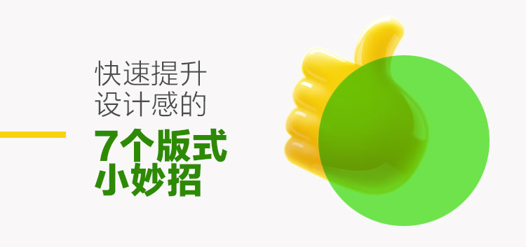 以上的七个小妙招是不是既简单又实用,你们在做设计的时候记得拿出来试试。不过这些也确实只是小技巧而已,只能优化局部,不要指望用上这几招就能做出很好的设计,而且它们也不一定适合所有情形,在实际操作中一定要具体问题具体分析,灵活运用。