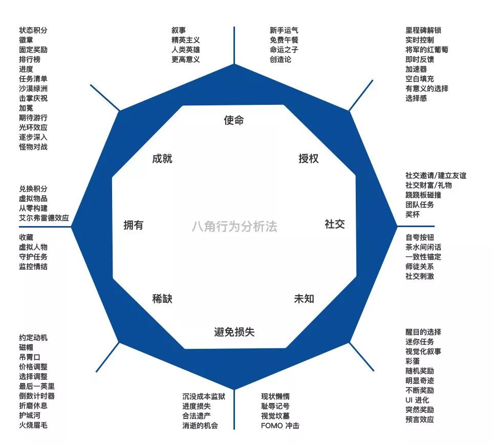 最近在一个工作坊上了解到 “八角行为激励模型”的概念 。但看完模型图,我们依然不知道如何去做游戏化的产品设计,有种 “红学家就是写不出《红楼梦》” 的无奈。