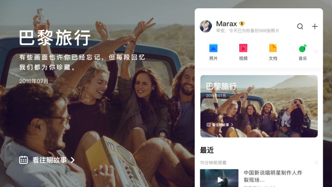 网盘一直以来存储着用户的美好回忆,比如:每一次难忘旅途的照片,宝宝成长记录,家人团圆时的合影,激情工作时的陪伴。因此,它不仅仅是一款冰冷的工具,而是一个懂你的、有情感、有温度的生活助手。