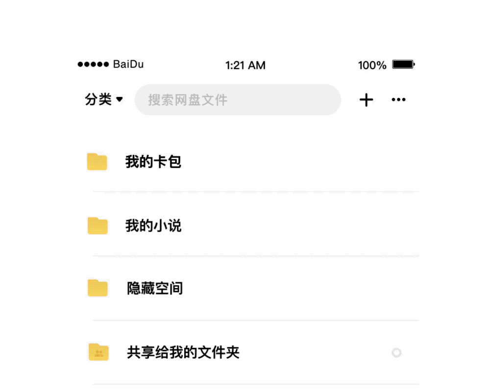 文件列表是用户使用网盘最高频的路径,针对这个场景,我们遵循视觉服从功能,极简克制的百度“高级感”设计理念,通过视觉手段区分信息层级,让用户浏览时“更便捷”。