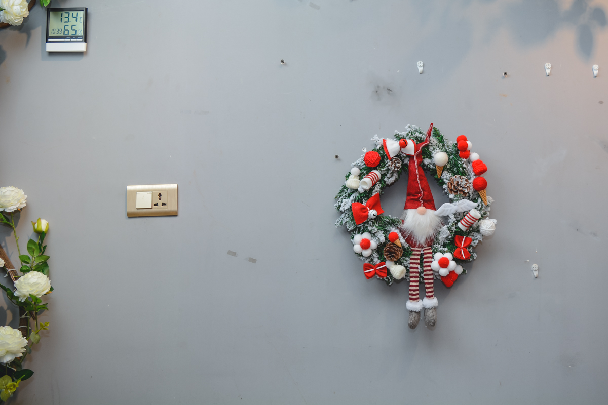 例如圣诞花环的这张图,把墙壁上的粘钩,插座,全部圈选,然后使用新功能修复,留出来干净的墙壁作为取样。一步去除瑕疵部位,节省时间