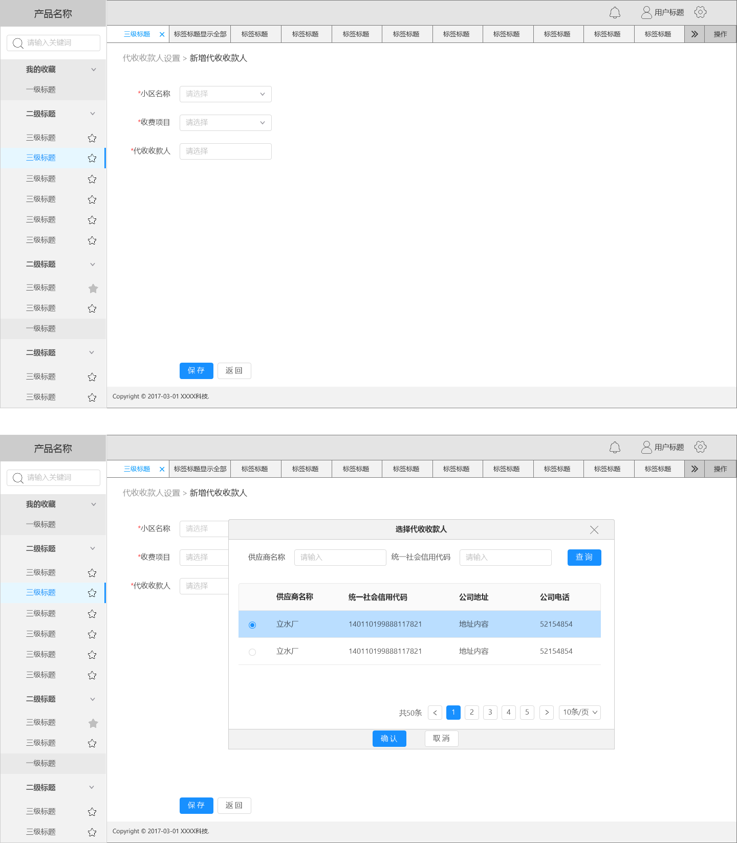 标签可以用于系统结构复杂的后台设计中,尤其是在左侧导航层级复杂,目录繁多的时候,不需要在左侧多层级的目录中寻找标题,用户可以通过标签快速打开要编辑的页面。有时候,用户需要对照两个或多个页面进行查看和编辑,这时候,通过快速切换标签查看要比从左侧目录中挨个点击要便捷的多。