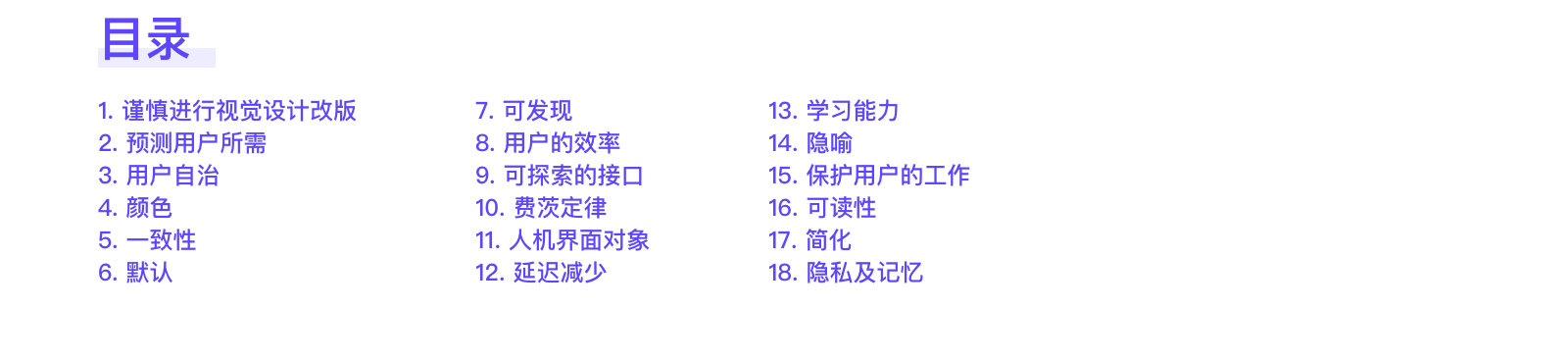 即不轻易改变用户已经习以为常的交互行为。例如翻页操作按钮位于右下角,而不应当将其放在左上角。使用户忘记潜意识的操作路径而去学习新的交互是一件令人沮丧的事情。再如mac和windows的快捷键不同,用户在不同系统使用软件完成任务时,需要频繁的忘记/重新学习多次。