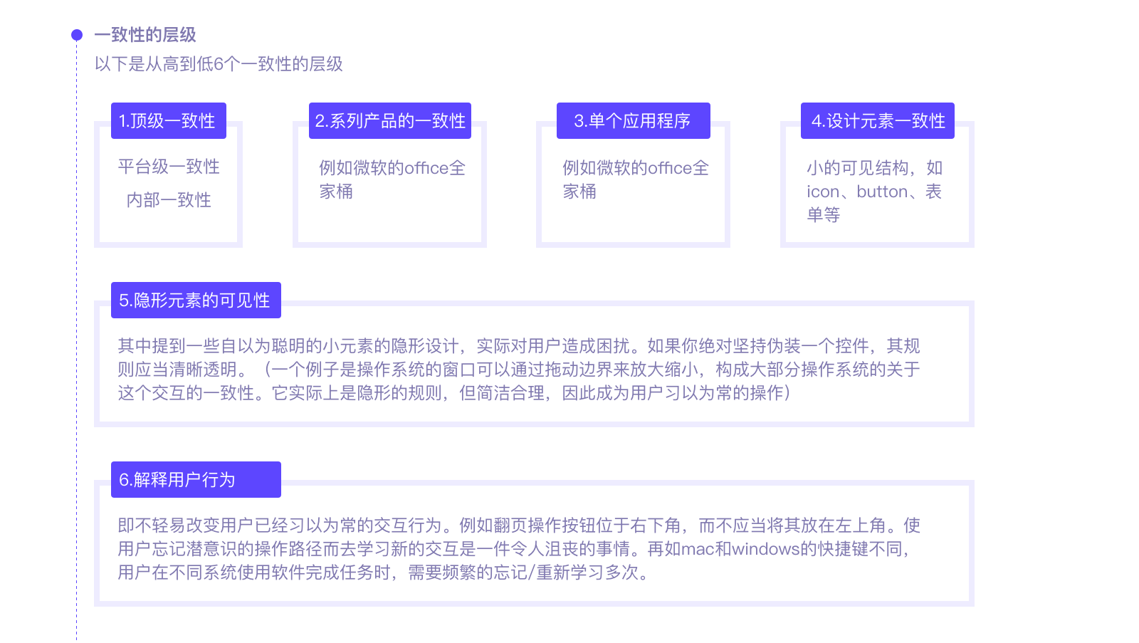 以下四个一致性原则即为交互人员提供了极高的产品设计自由度,又不会严重破坏产品体验的一致性。
