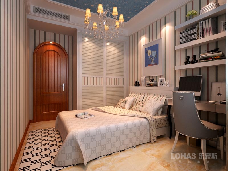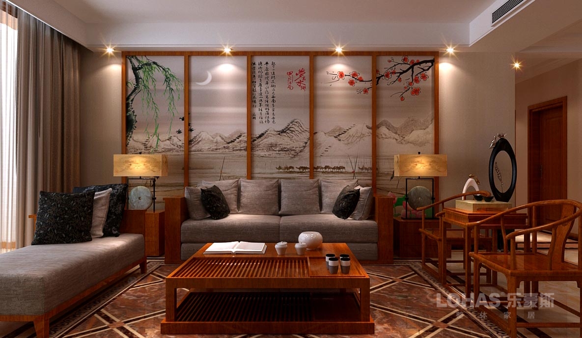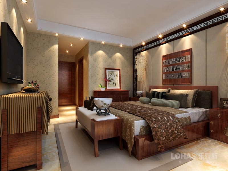 新中式风格 中国风并非完全意义上的复古明清,而是通过中式风格的特征, 表达对清雅含蓄、端庄丰华的东方式精神境界的追求,在中国文化风靡全球的现今时代, 中式元素与现代材质的巧妙兼柔, 实木家具、窗棂、布艺床品相互辉映,再现了移步变景的精妙小品。 本案业主为中年夫妇,居于纷繁熙攘的大都市中,奢侈的从不是高档的红木家具与水晶灯, 而是淡定宁静的心态;一个家所承受的也从不是富丽堂皇的装饰,而是一份令人放松的温馨。