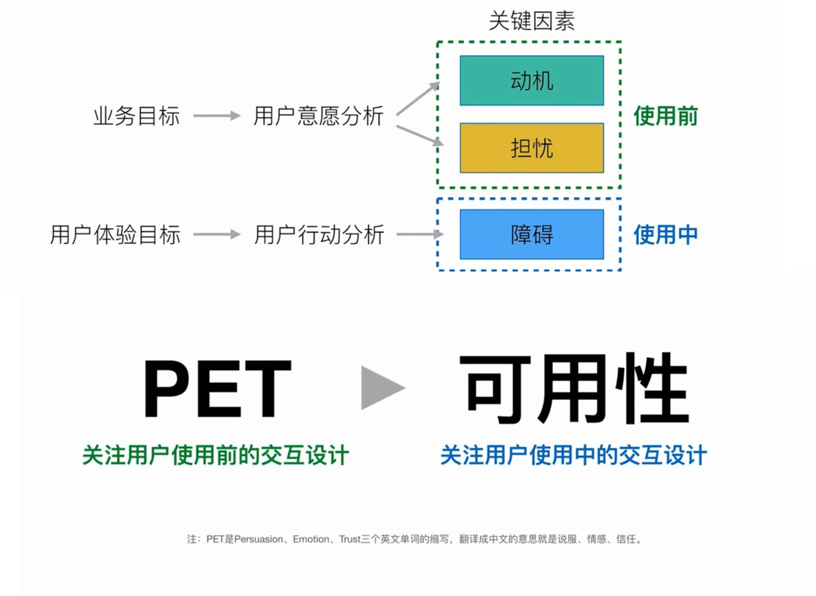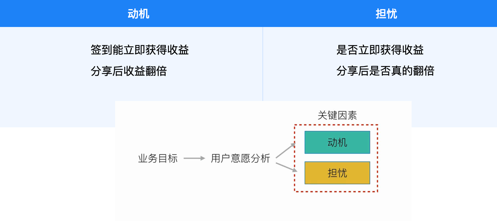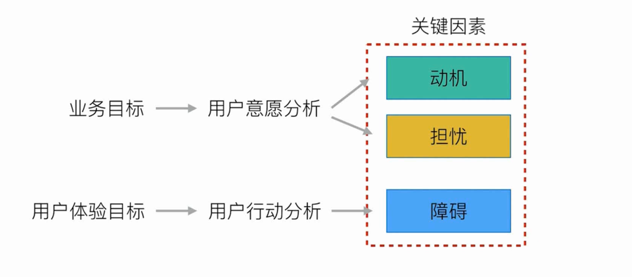 我们需要将业务目标与用户意愿结合,分析用户的动机及担忧。(只有用户的意愿与业务目标一致,整个流程才能完成,这里默认是一致的,即产品提供服务,用户为企业带来价值)