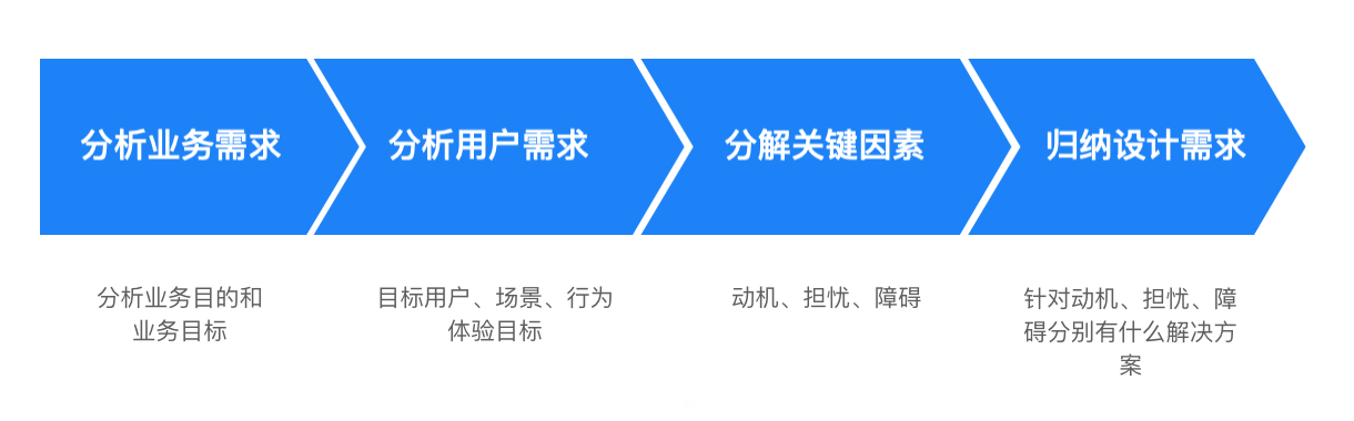 分析产品目标-分析业务需求-分析用户需求-分解关键因素