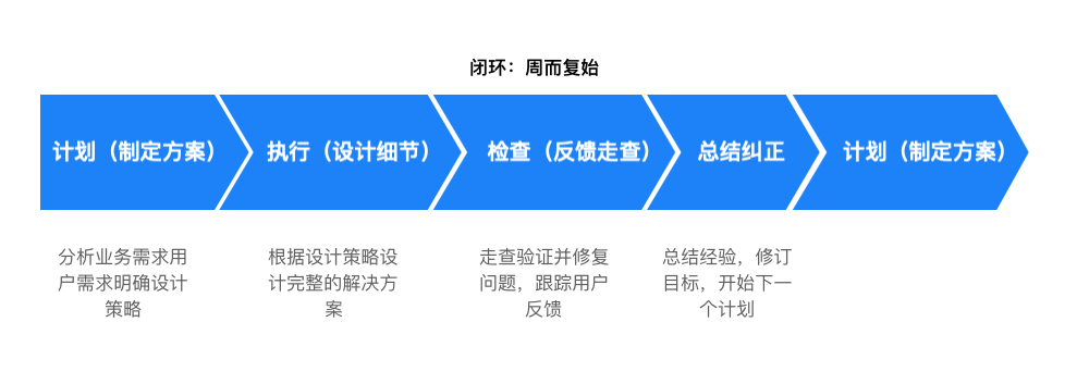计划(方案)——执行——检查——总结纠正,一个闭环周而复始直到解决问题