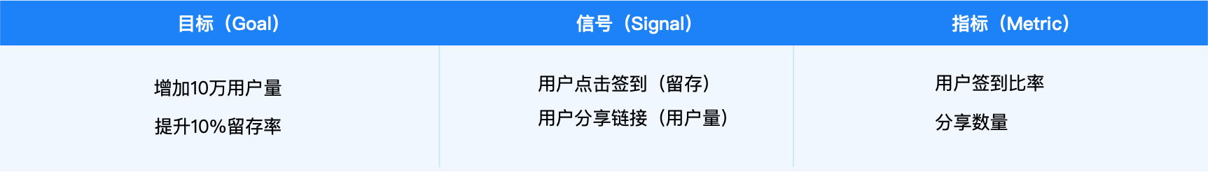 首先我们可以通过GSM方法将目标和设计用户行为建立关系,即根据目标获得影响目标的指标,这个指标是和用户直接挂钩的,如用户签到比率,分享率等。