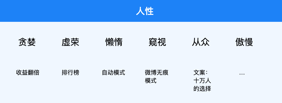 即通过引导用户的使用来帮助产品实现目标(我们期望一个共赢的局面,即用户能够通过产品完成自己的目标,同时产品在帮助用户实现目标的过程做,获得利润达成业务目标)利用动机,如人贪婪的天性。