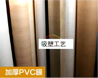 第六步,将所有材料全部放入全自动吸塑机中,然后把PVC膜贴在图案造型表面即可,这样就变成了大家在家具市场常见的门板样品。
