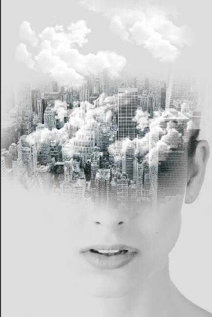 北欧现代简约抽象黑白美女城市建筑装饰画