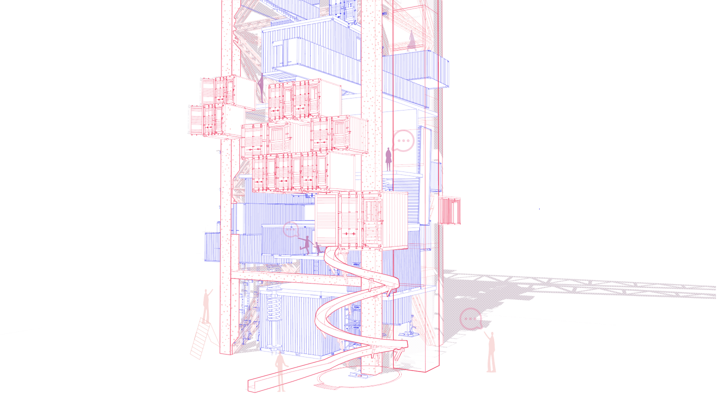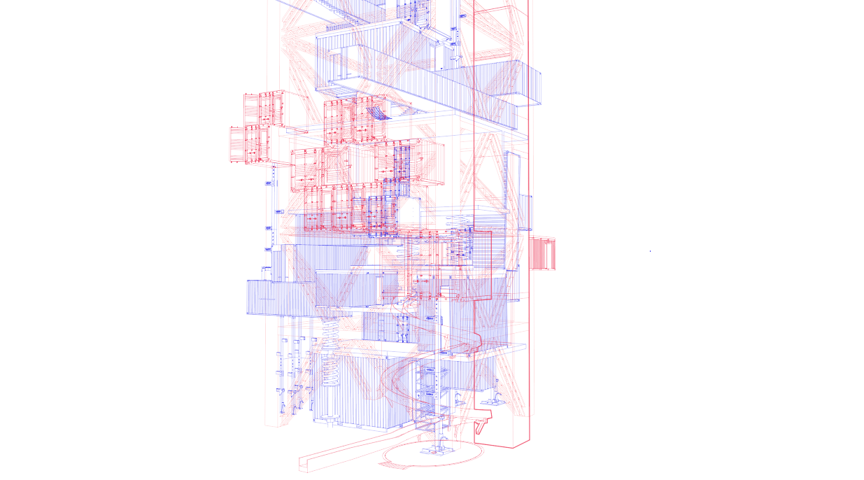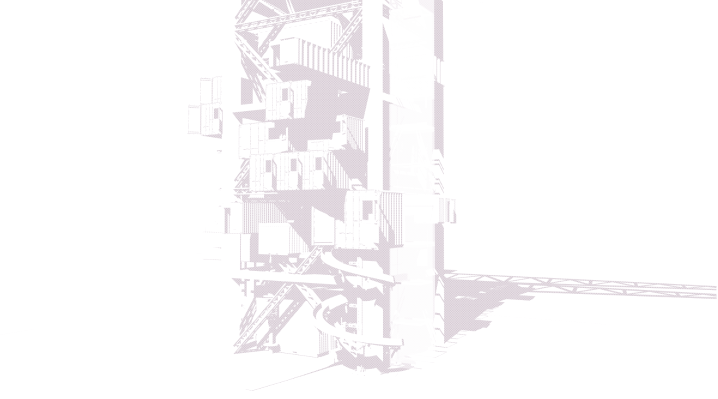 4.由于线型都叠加在一起,比较乱,层次感不强,所以我根据模型中实际的前后遮挡关系,在图里使用钢笔工具画出相应面积的白色进行遮挡,营造出前后关系。