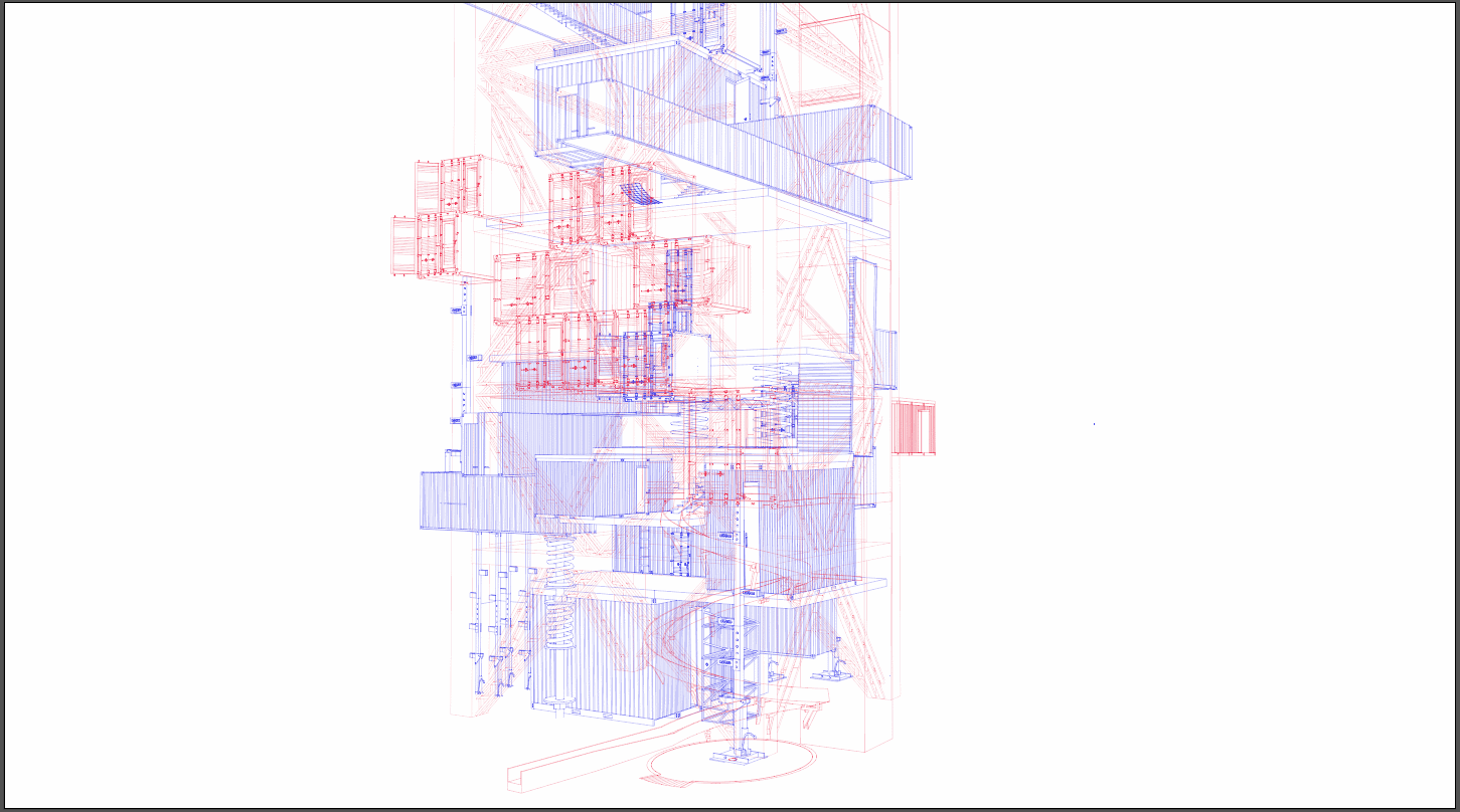 1.首先打开模型,将模型角度调整为你想要的角度,然后将模型调整为消隐(hidden line)模式。由于这个模型较复杂,线条非常的多,一次全部导出会非常的慢,并且导出后所有线型都混在一起,不方便与后期的进一步制作。所以在导出前,我们应该对模型进行分层,然后单独分别导出每一组模型。