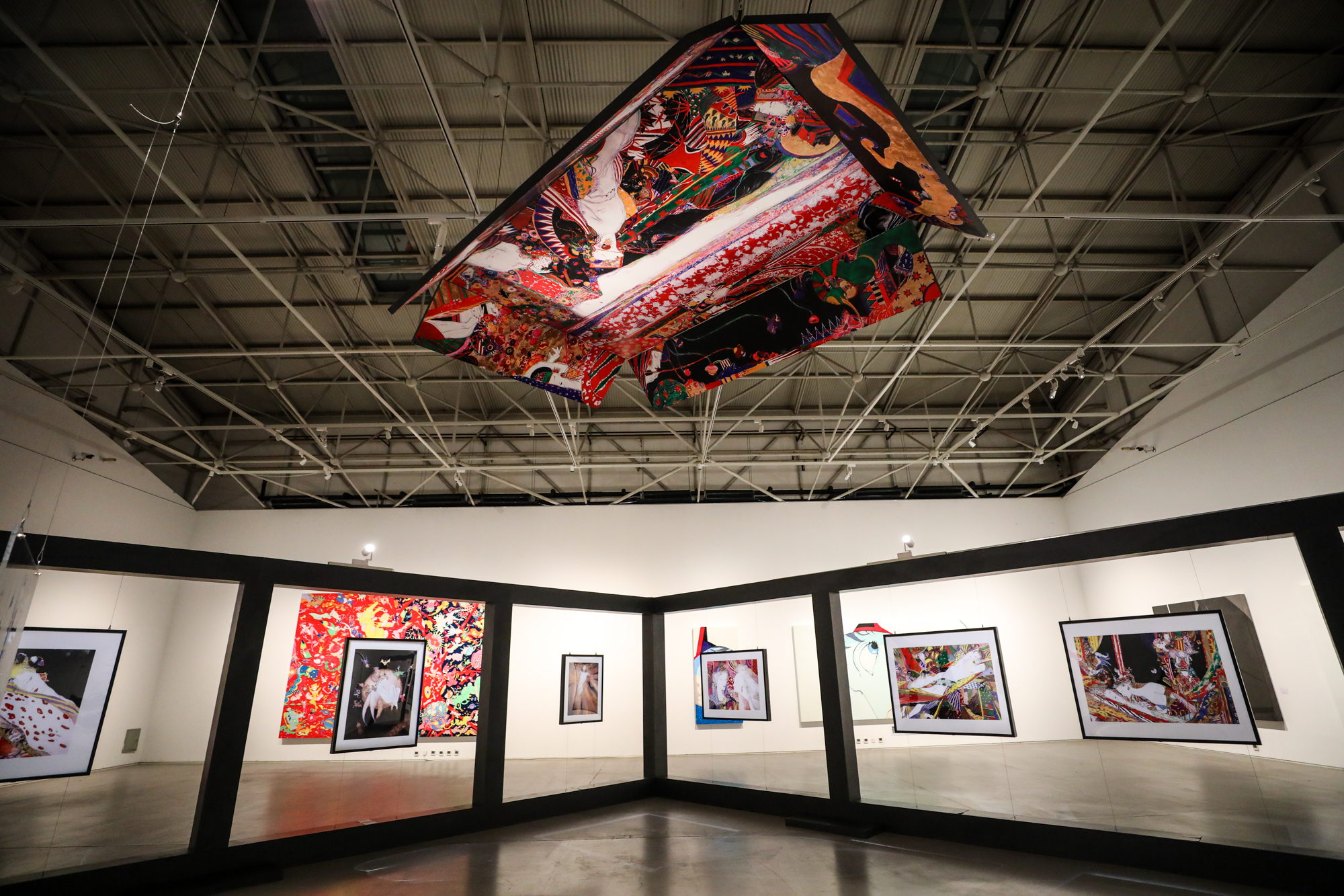 天野喜孝:这次的展览分为了两部分,因为最主要的作品卡在了海关的审查手续上,所以前半段的展览成了预热,是第一部分,而主要的作品都在第二部分。现在第二批作品都运过来了,所以,其实现在的展览才是真正正式的开始了。接下来去看的话,在二楼的展区里有一些铝合金材质创作的作品。还有一部分超大尺寸的作品,这两部分首次在中国公开,是一个比较大的看点。