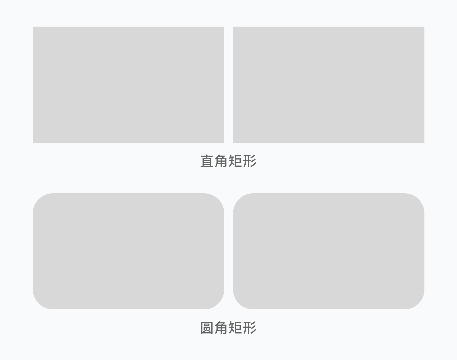 当多个卡片并排时,带圆角的卡片具有更强的内部指向性,且相邻的两条线差异化较大,我们可以清楚分辨他们的边界线,所以更加容易被分辨;而同样大小的直角矩形的内部指向性较弱以及临近的两根“线”更加相似,分辨起来会相对困难一些。