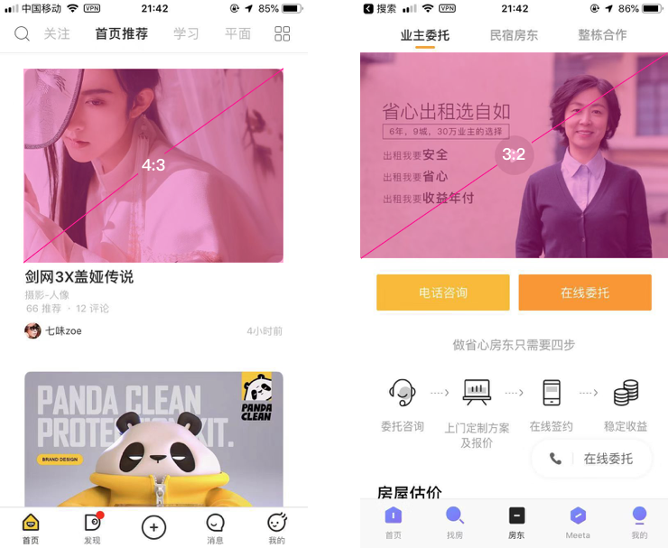 在设计工作中我们有可能需要设计一套基准设计图来达到适配多个分辨率的终端,所以我们可以选择中间尺寸750*1134px作为基准,向下适配640*1136px,向上适配1242*2208px和750*1624px/1125*2436px。