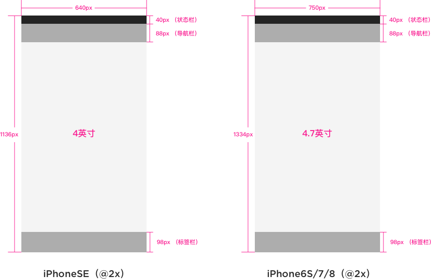 由于750*1334px和640*1136px两个尺寸的界面都是2倍的像素倍率,因此它们的切片大小是相同的,即系统图标、文字和高度都无需适配,需要适配的是宽度。