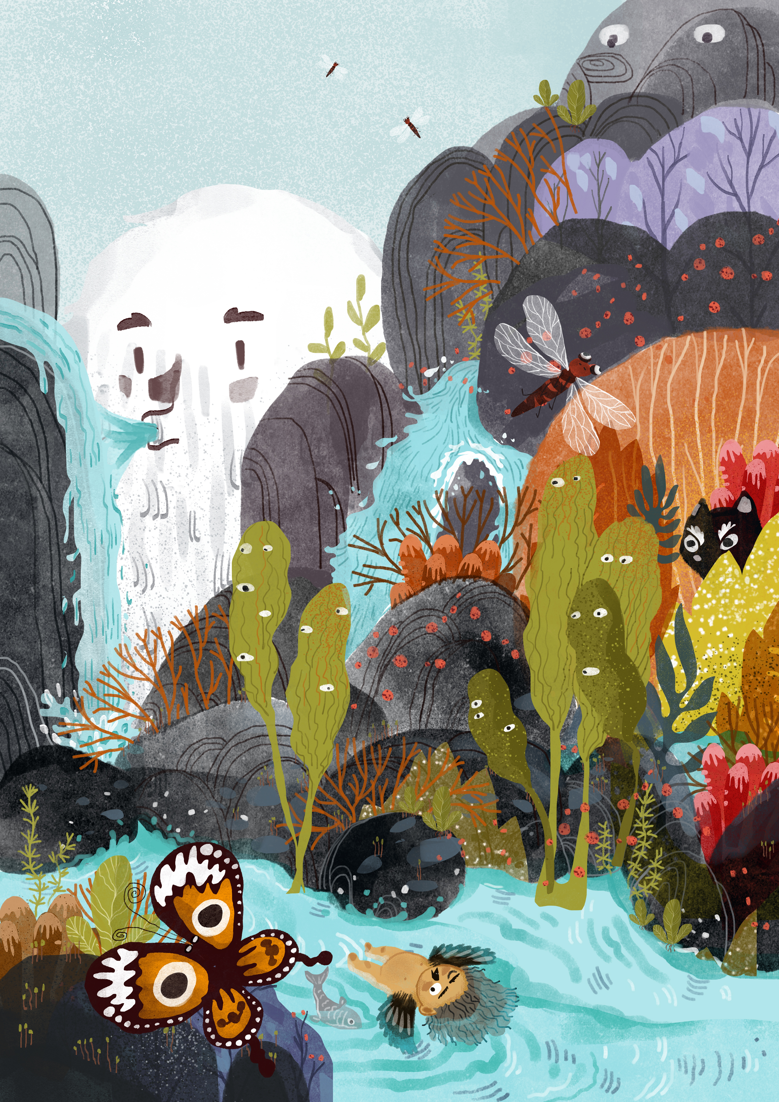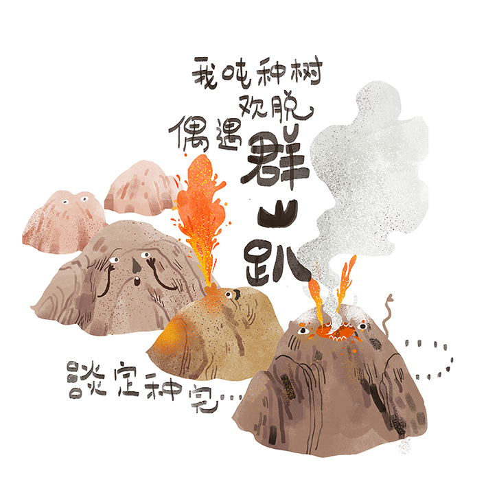 张弘蕾:我好像没有什么特别高明的手法,只是觉得山体、草木都是如精灵一般存在着的,它们会呼吸而且有思想。所以我为了更强调这部分,给他们加上了可爱的五官,并且让他们有许多互动行为。