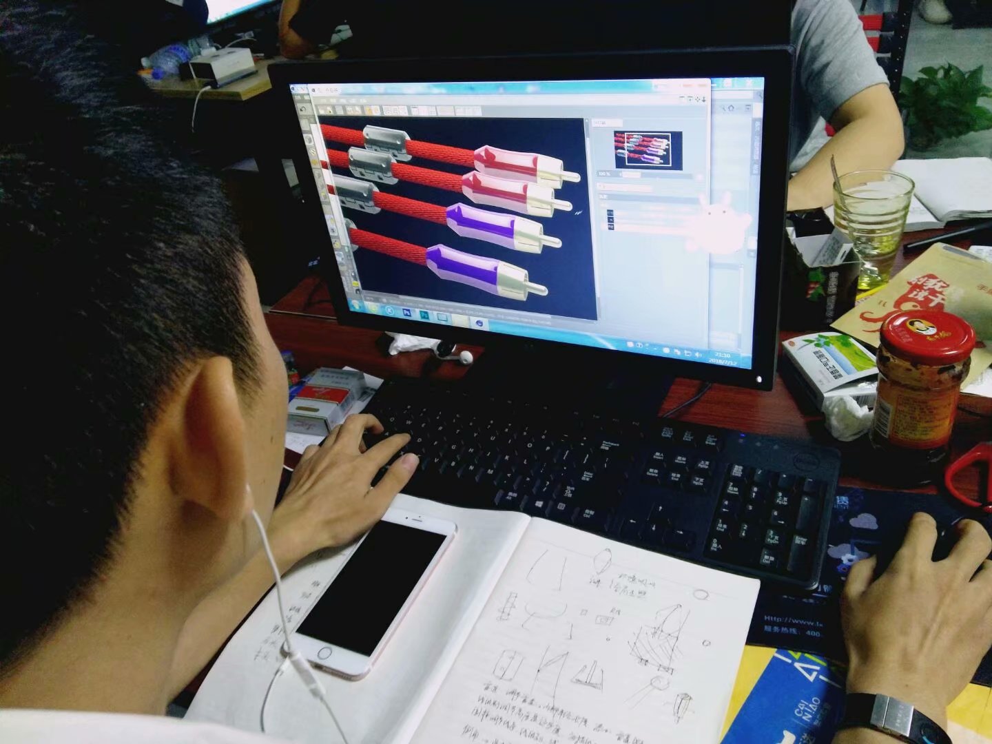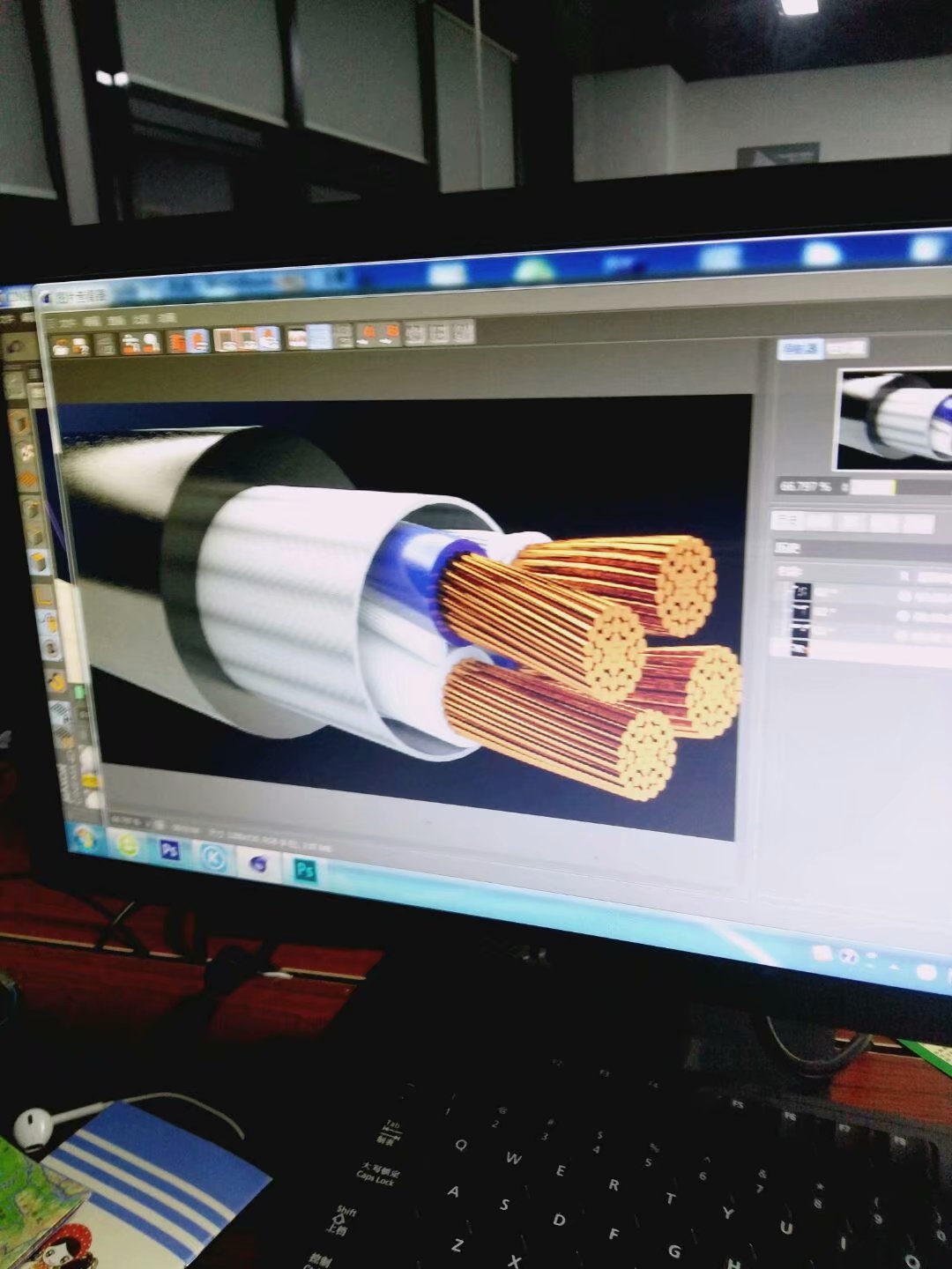 小蒋来的时候,我们正在复习C4D做更多的案例,他这个时候来,自然就跟着 学习C4D了,他是做线材生意的 ,所以就只接开始用C4D渲染线材,达到那个高逼格的海报。