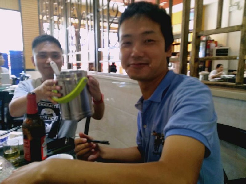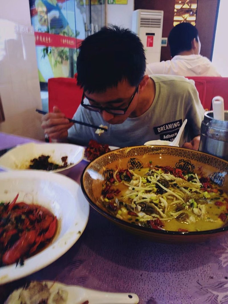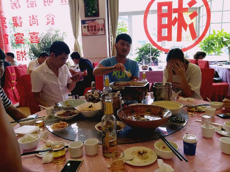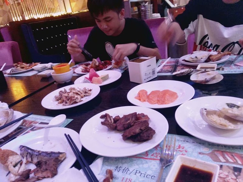 到了之后,先是一顿大餐,你看他就是让多吃点,吃饱,你看蓝衣的童鞋,嘴角的米饭,服务员也看他,当时我跟之前那位童鞋吃饭的时候,服务员也看我,当时说我鼻屎粘贴到脸上了,我到现在也不信,但看到这一幕后,我信了,不过我也没告诉他,就这样吧,挺好,大家都不是什么大人物,接地气。