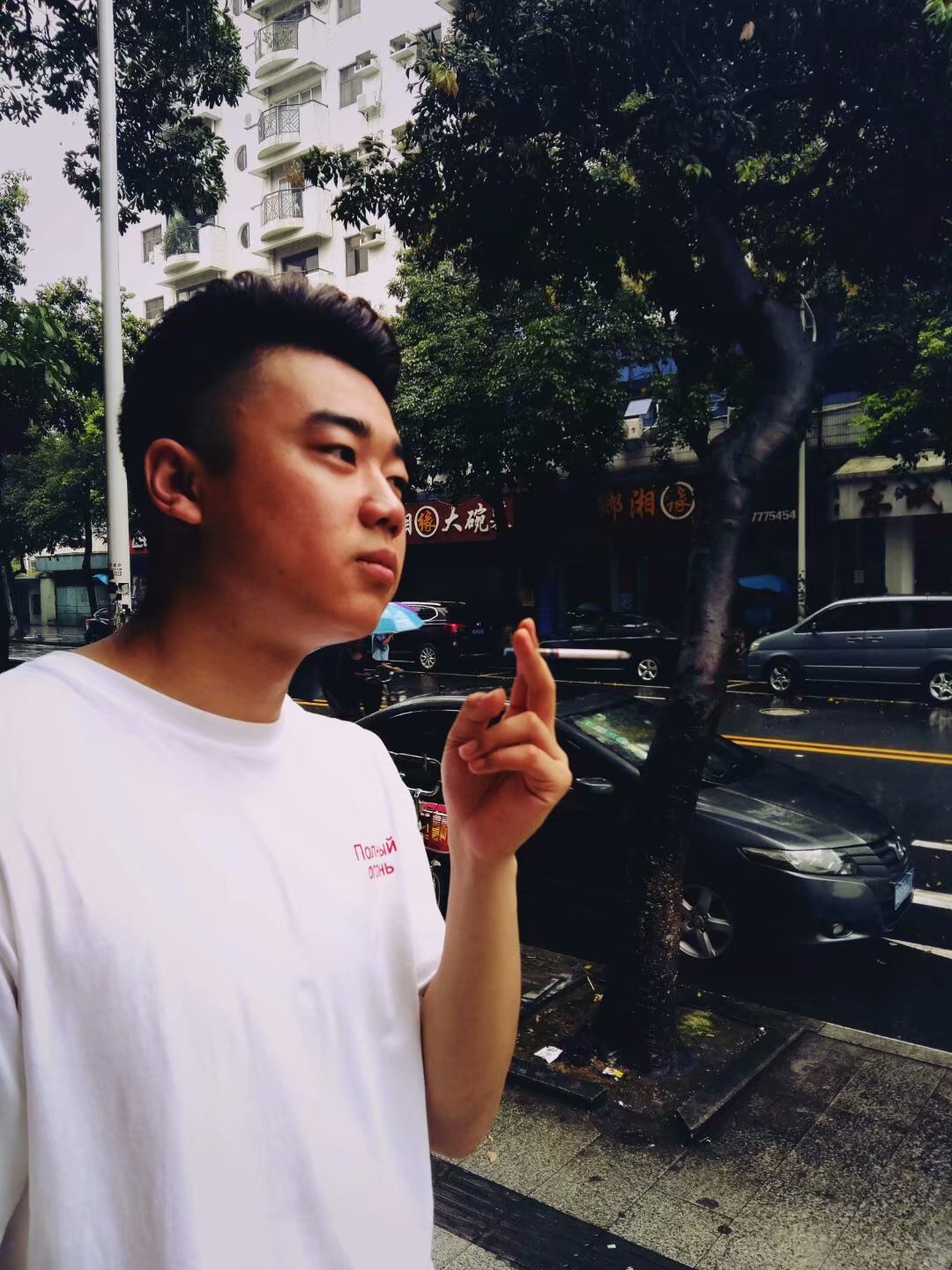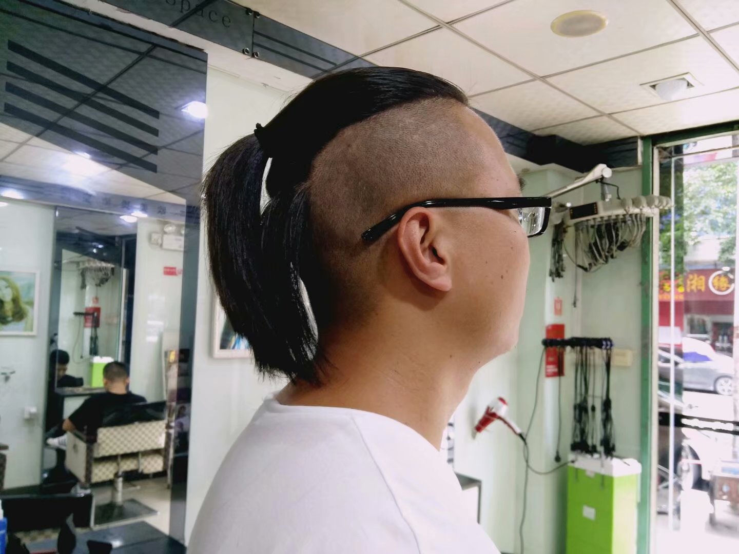 剪完之后,他说还是挺满意的,感觉精神多了,要摆个POSE拍上几张,感觉他的脸上漏出了年轻人自信的表情,不错有前途。