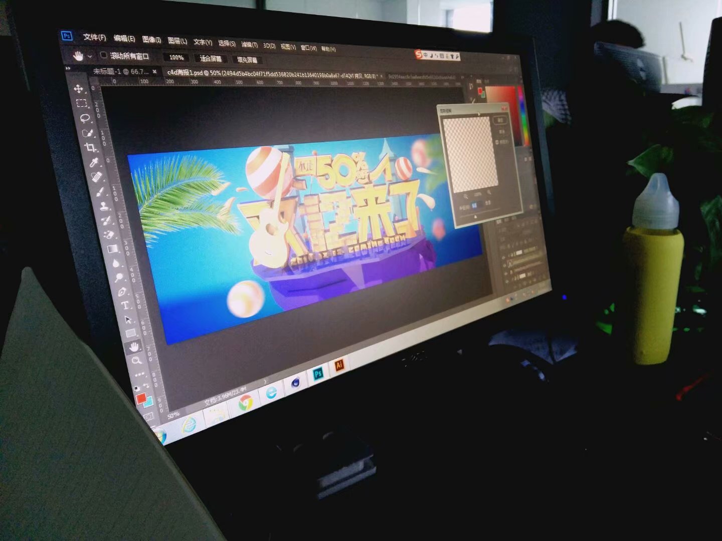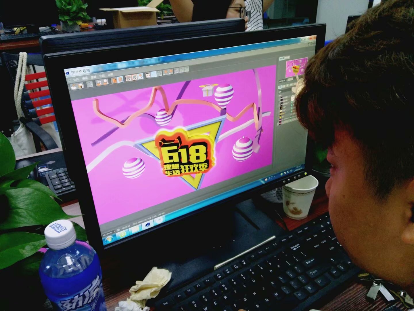 然后就是要继续升华C4D海报等内容,就是这个时间又过来一位新童鞋,这时候我简直奔溃了,小邓,我用了很多时间,刚从PS网页C4D过来,这下倒好又来一位,这车轮战,实再受不了呀,首页我身体感觉撑不住了。