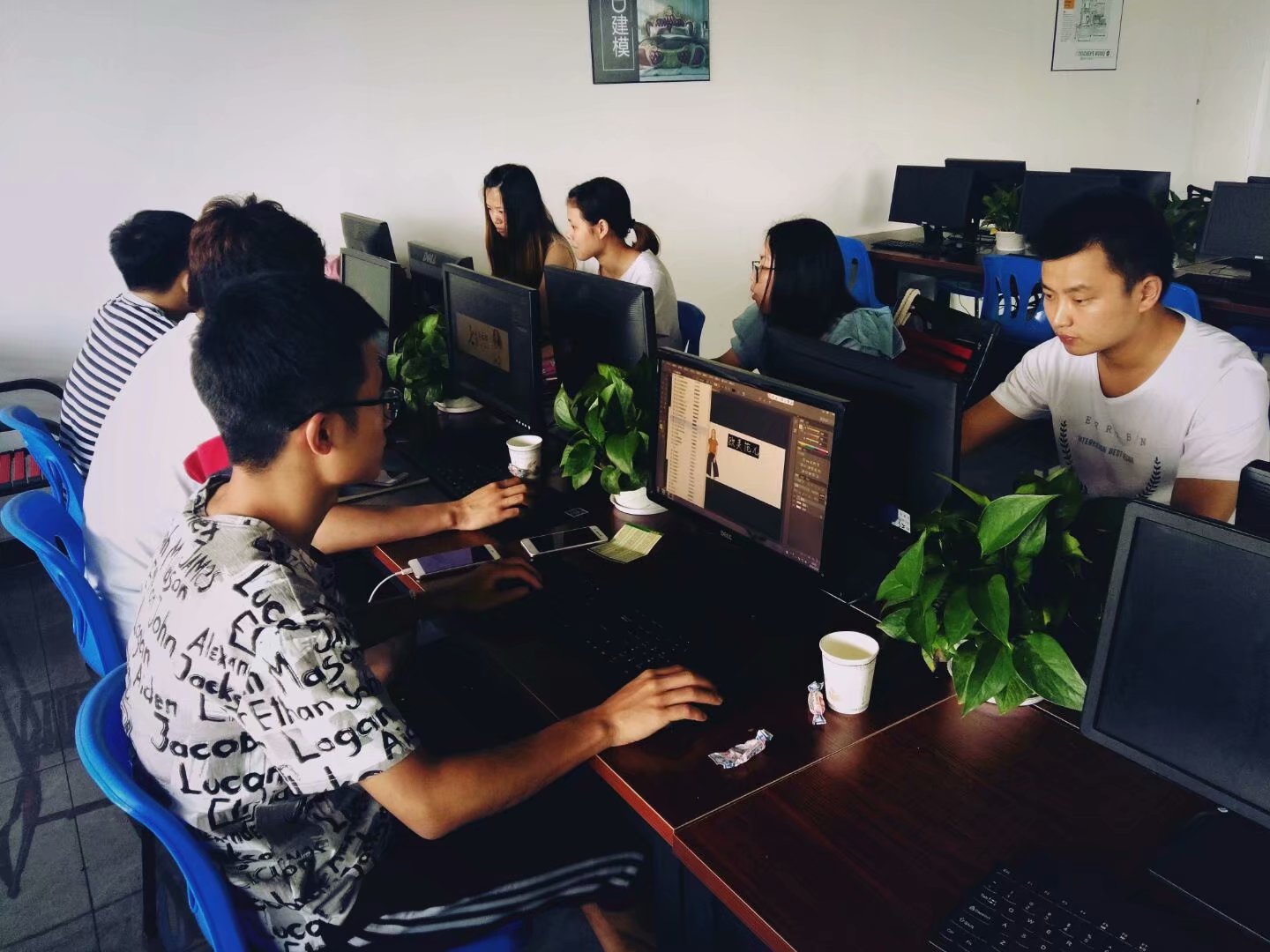 看这位挺着大肚子穿着灰色衣服的童鞋,你肯定想不到,他以前当过兵吧,在我们某直升机大队专修直升机。其他的就保密了不能再说了。按说,这么一个技术人才到这里学设计,有点大材小用吧,他说,他也说不上为了什么,反正一听是村长就来了,这位童鞋目标定位不是很明确,虽说技术是学到了,但是由于决心不是那么肯定,只是想当一个业余爱好来学一学,跟他聊了很久,也了解到,他也有自己想做的事,想实现的理想,无奈束缚自己的东西太多,也做过很多工作,希望学了这个,能给他以后道路增加一些优势吧,希望你沉着冷静,不骄不躁,一有时间就自己做一些东西。不要学了就丢掉,你还是很有耐性的,只不过目标不清楚,下不了决心。只要你能清晰的认识到自己想做什么,下定决心,肯定能实现自己心中所想。