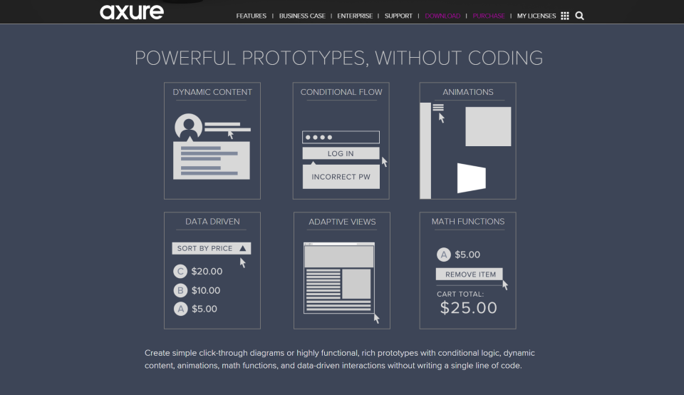 Axure在交互设置中,可以添加条件判断,但需要用户有一定的编程常识,否则掌握起来有相当难度。尤其是初次使用的时候。