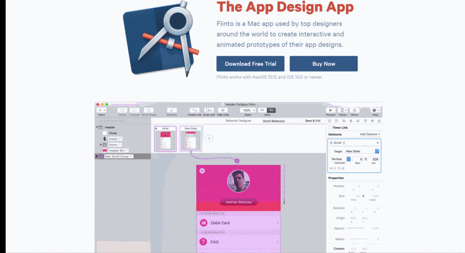 Flinto可以快速实现交互设计,与Sketch无缝对接,并且通过插件就可以把素材直接导入到Flinto中,添加链接和过渡效果或者添加自动跳转。通过上传图片,添加热点配合相应的交互动作快速的生成原型,方便客户通过网页或者手机端进行观看。