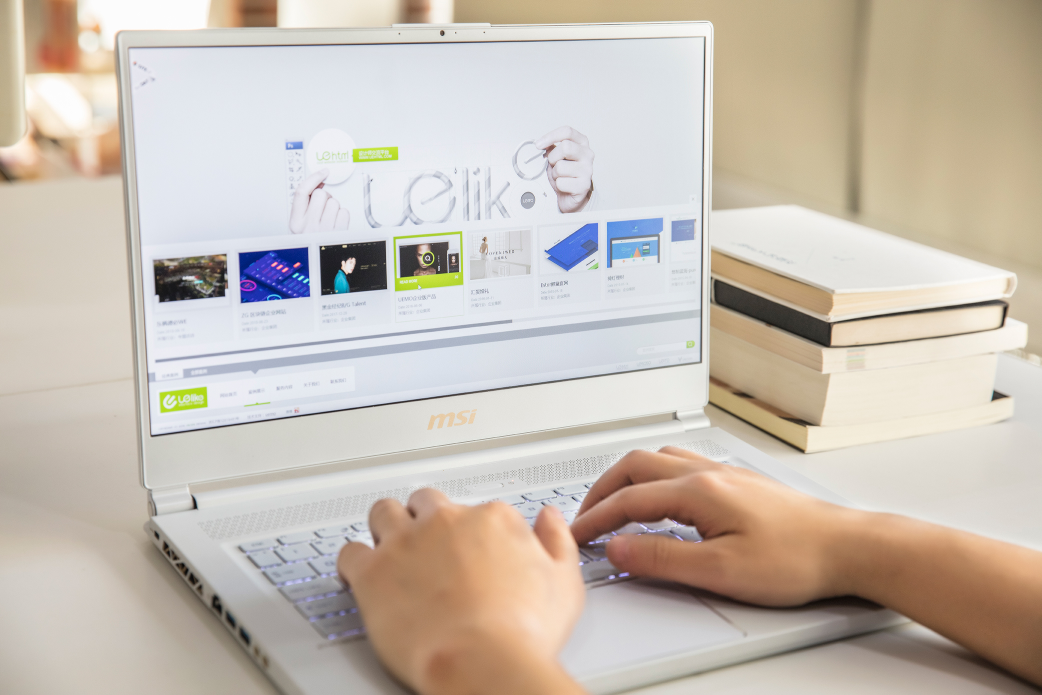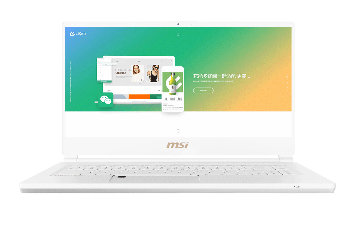 微星P65拥有72% NTSC色域以及接近100% sRGB色域,在同等价位的电脑中我觉得实用性还不错,综合实力很强,比较适合设计师用。对于网站的浏览者来说色彩的视觉引导性很重要,为了保持魔艺(UEmo)的整体调性,页面做了比较细腻的颜色渐变 ,颜色过渡值为 #69a5ed,#2ecc80,#ffc171,在微星的笔记本里显示的颜色还原度非常好,市面上的普通显示器是无法做到这种还原效果的。
