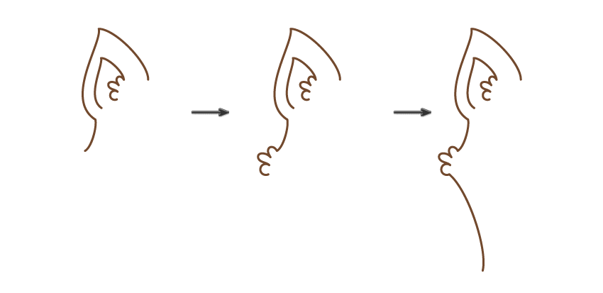 在耳下添加一个弧线后,继续绘制毛发,最后,添加第二个曲线