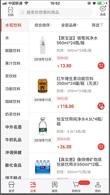 店加是一个便利店老板采购进货的平台。在分类列表页面,用户会进行批量加购操作。购买N个相同的商品,用户有两种方式:一种是先找到要买的商品添加到购物车,再到购物车列表中调整每个商品的数量N;另一种是找到每个商品后,加购N次。