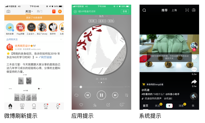 非模态弹窗与模态相反,是一种轻量级的反馈提示,用户可以不用作出反馈操作。目前各大应用的安卓和iOS非模态弹窗基本可以复用,没有过多差别。
