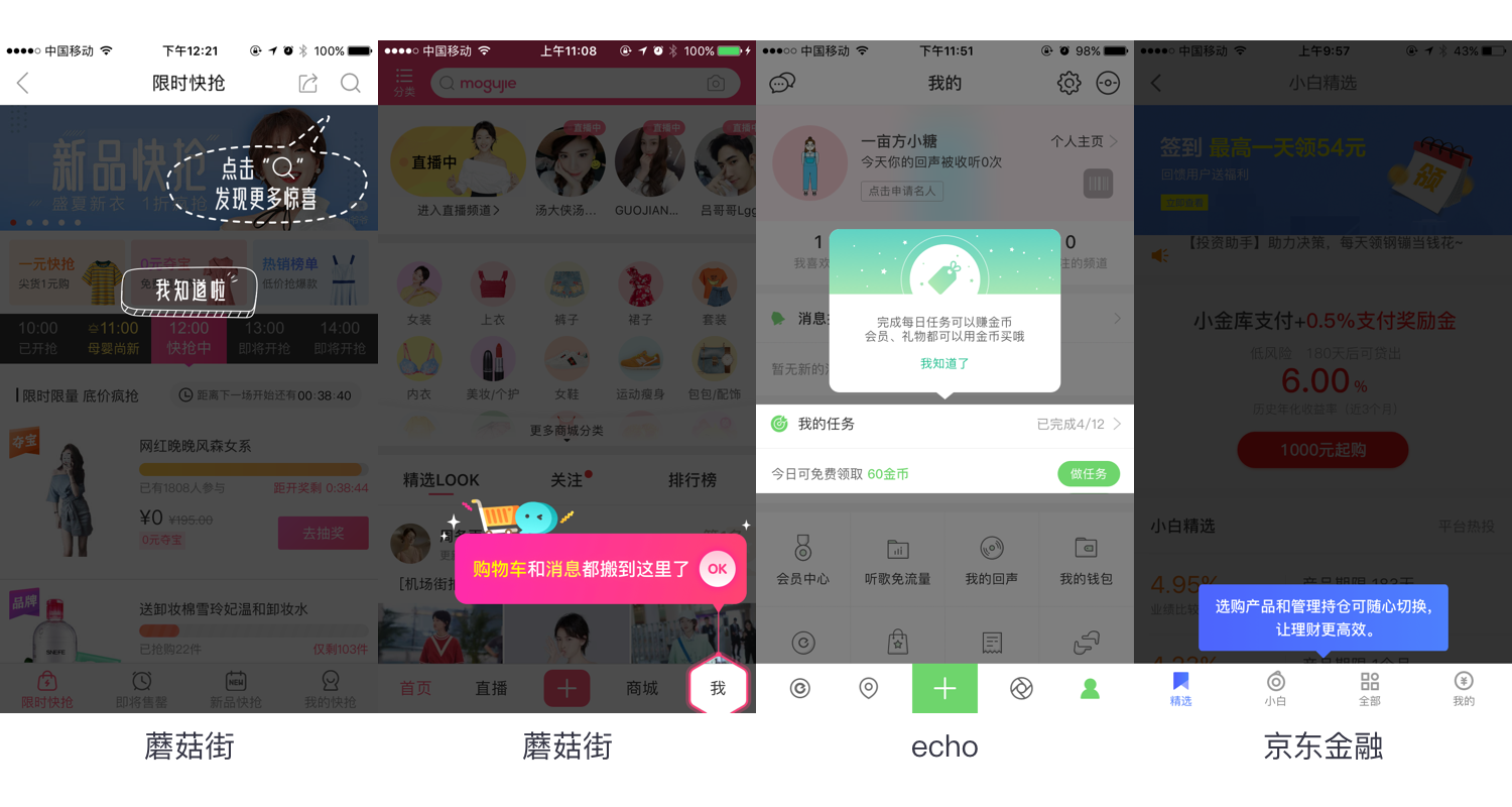 主要应用在页面新手引导场景中,通过气泡浮层进行功能提示,降低用户的理解成本。功能引导的浮层可以通过视觉化进行设计,降低弹窗带来的打断用户操作的负面影响。
